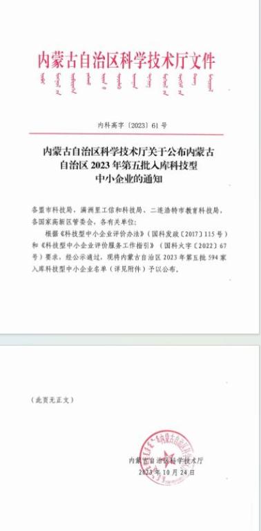 内蒙古自治区2023年第5批入库科技型中小企业名单公告正文.jpg PICTURE