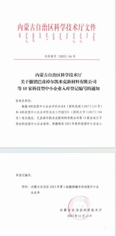 内蒙古自治区2023年第1批撤销编号科技型中小企业名单.pdf FILE