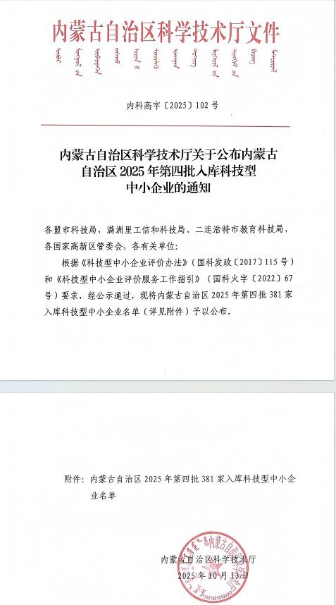 内蒙古自治区2025年第4批入库科技型中小企业名单公告正文.jpg PICTURE