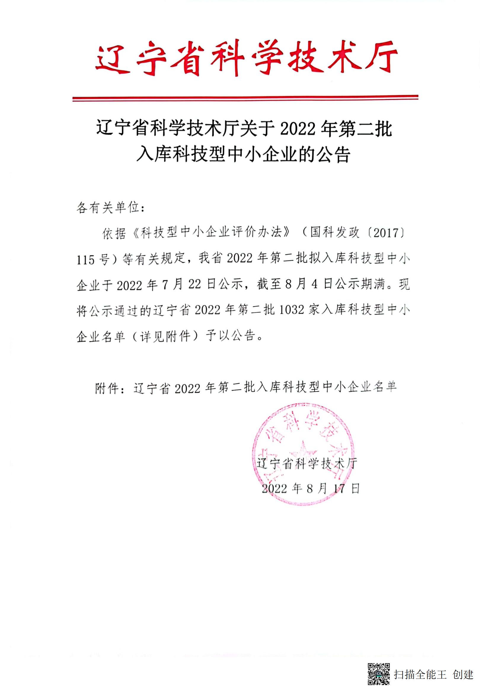 辽宁省科学技术厅关于2022年第二批入库科技型中小企业的公告_00.jpg PICTURE