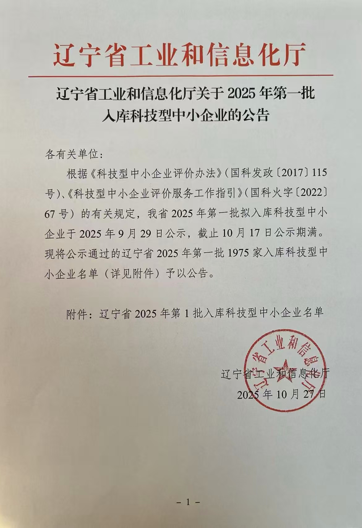 辽宁省2025年第1批入库科技型中小企业名单公告正文.jpg PICTURE