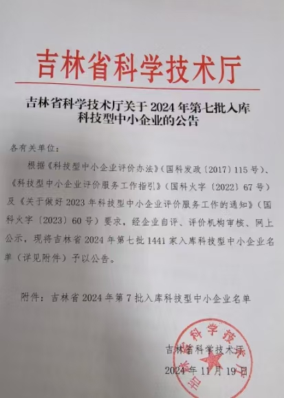 吉林省2024年第7批入库科技型中小企业名单公告正文.jpg PICTURE