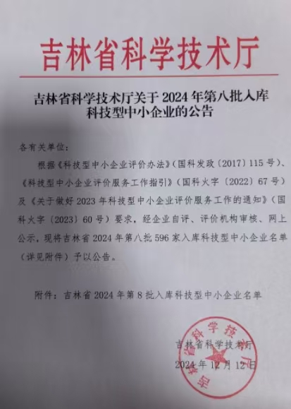 吉林省2024年第8批入库科技型中小企业名单公告正文.jpg PICTURE