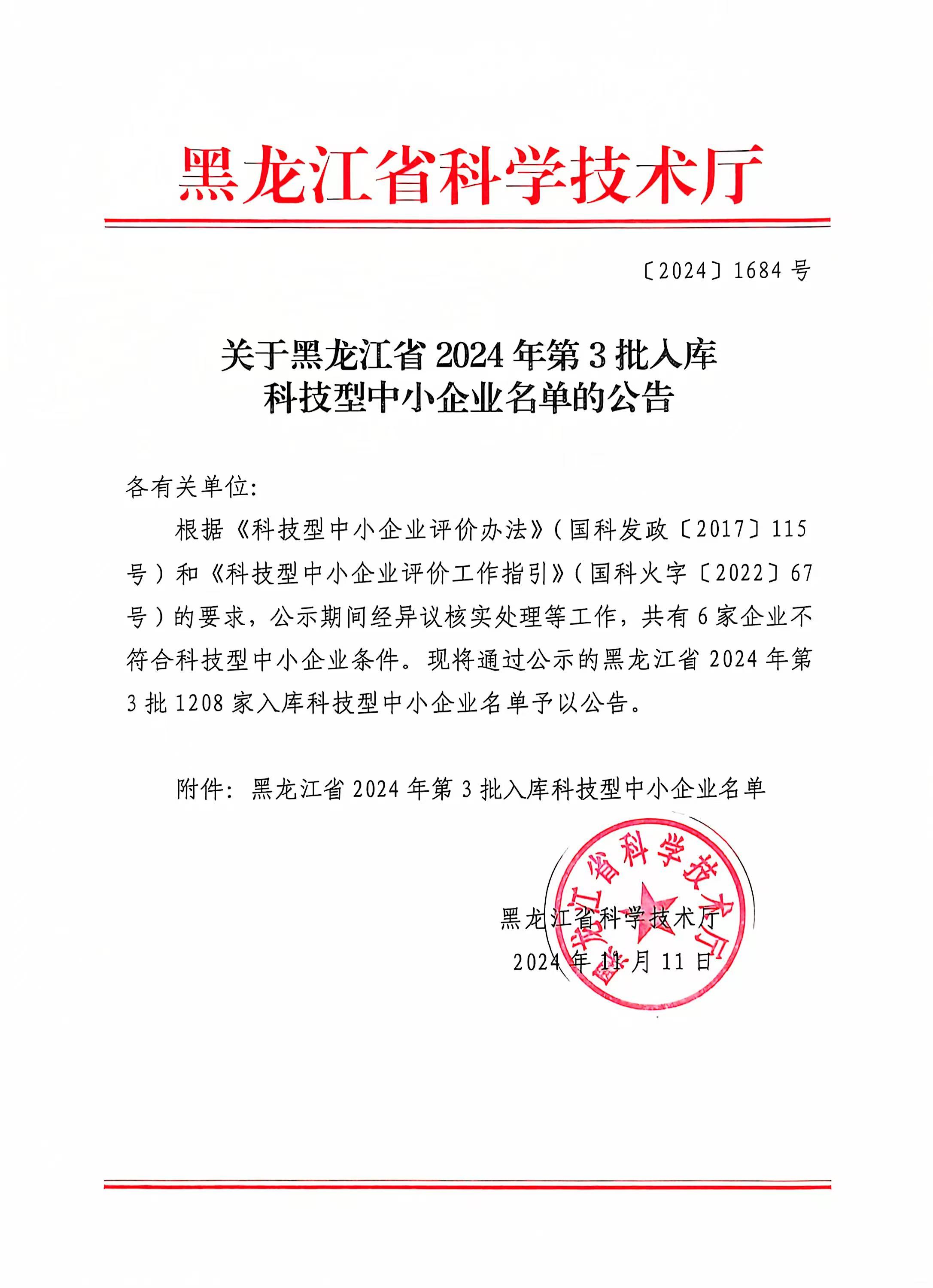 黑龙江省2024年第3批入库科技型中小企业名单公告正文.jpg PICTURE