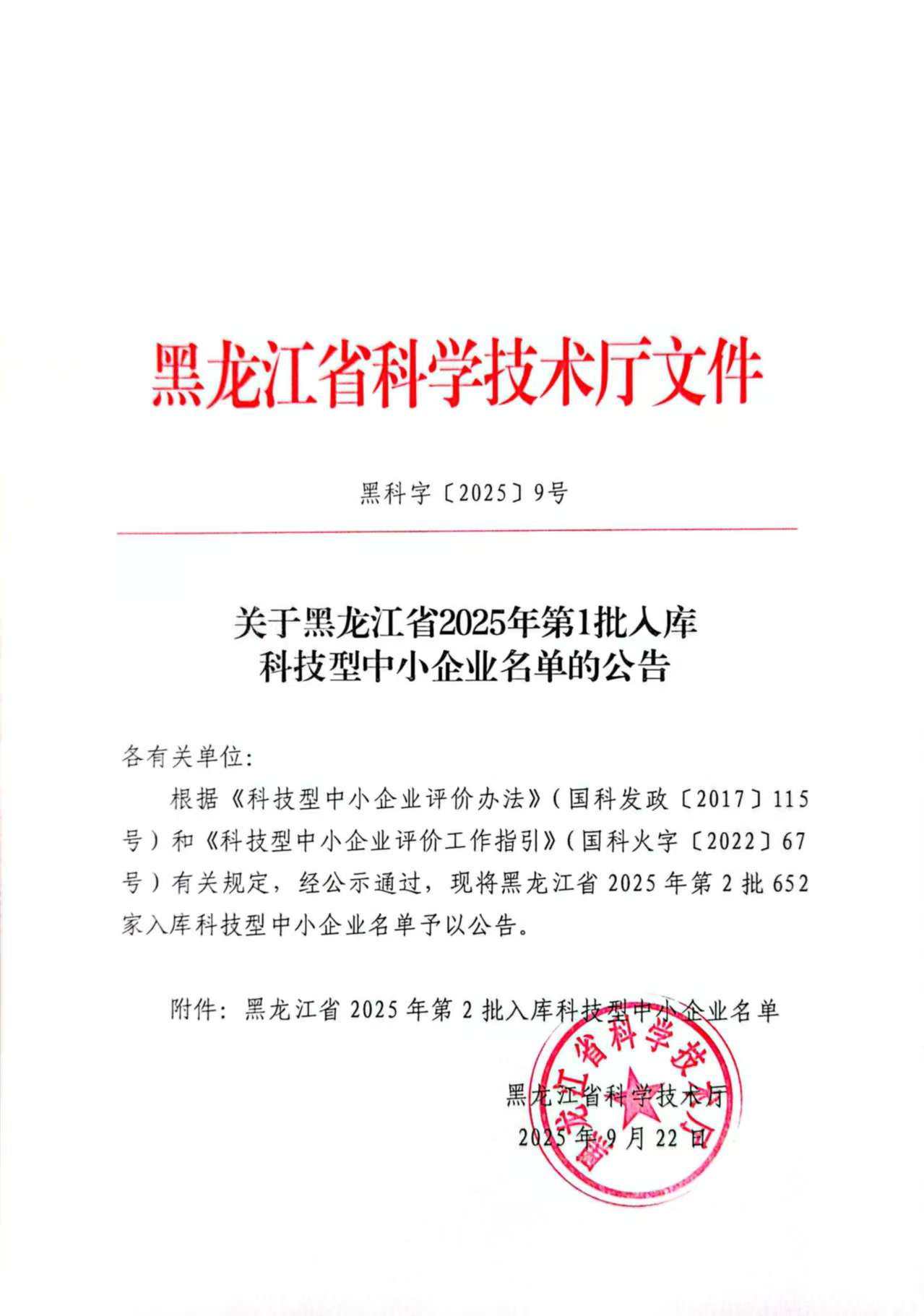 黑龙江省2025年第2批入库科技型中小企业名单公告正文.jpg PICTURE