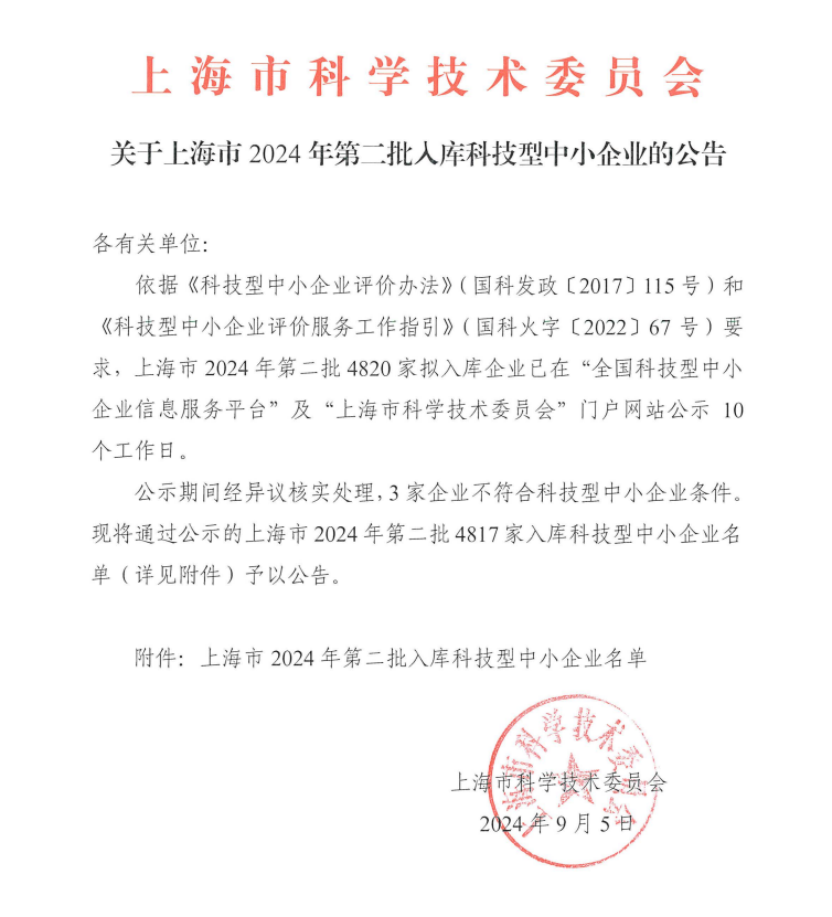 上海市2024年第2批入库科技型中小企业名单公告正文.jpg PICTURE
