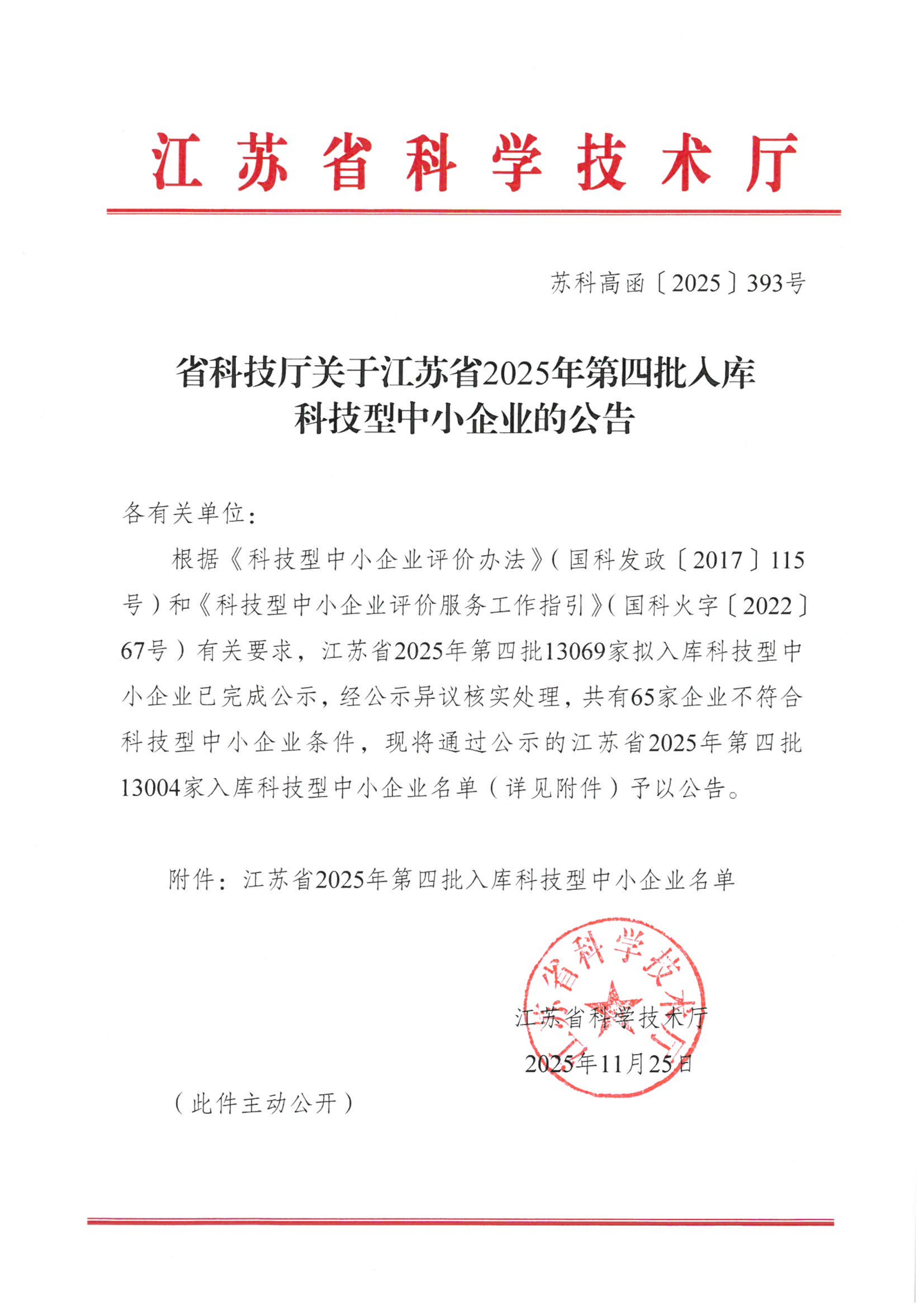 江苏省2025年第4批入库科技型中小企业名单公告正文.jpg PICTURE