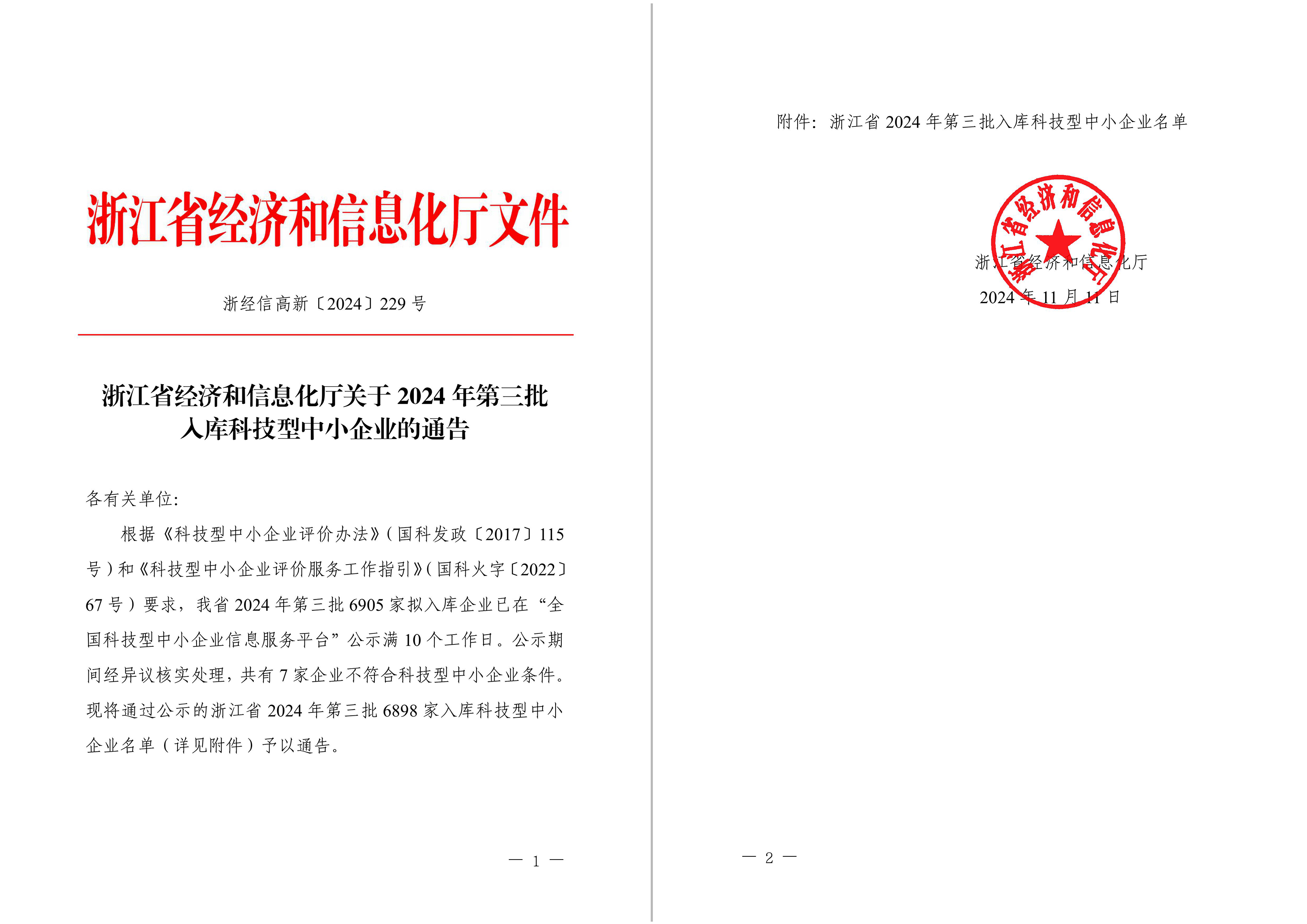 浙江省2024年第3批入库科技型中小企业名单公告正文.jpg PICTURE