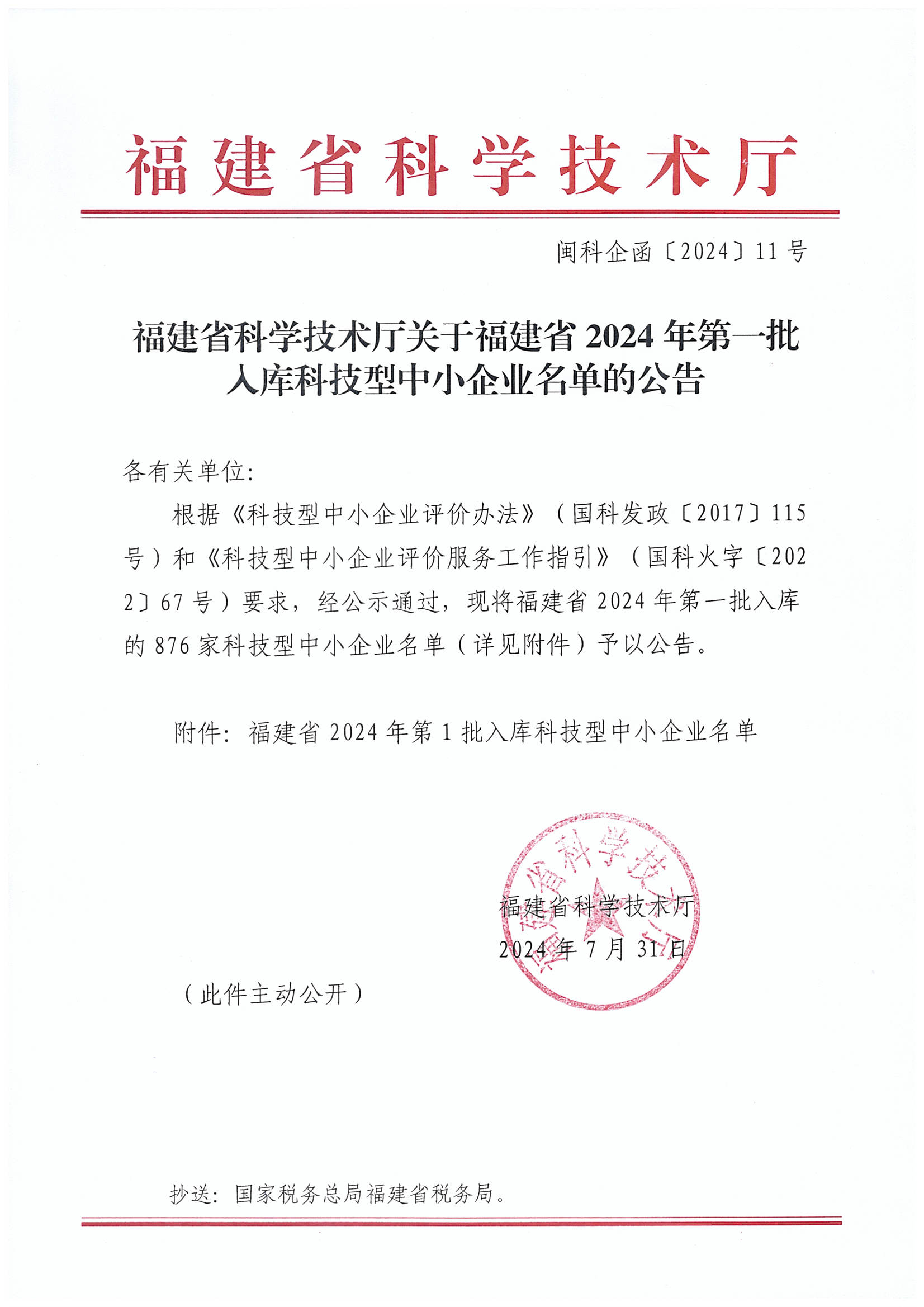 福建省科学技术厅关于福建省2024年第一批入库科技型中小企业名单的公告.jpg PICTURE