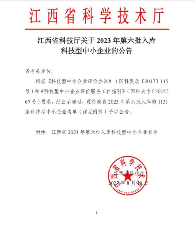 江西省2023年第6批入库科技型中小企业名单公告正文.jpg PICTURE