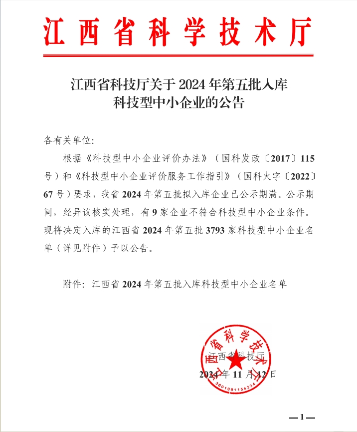 江西省2024年第5批入库科技型中小企业名单公告正文.jpg PICTURE