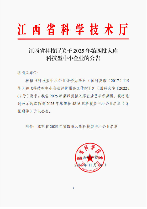 江西省2025年第4批入库科技型中小企业名单公告正文.jpg PICTURE