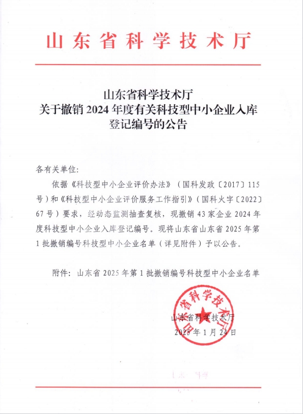 山东省2025年第1批撤销编号科技型中小企业名单+(2).pdf FILE