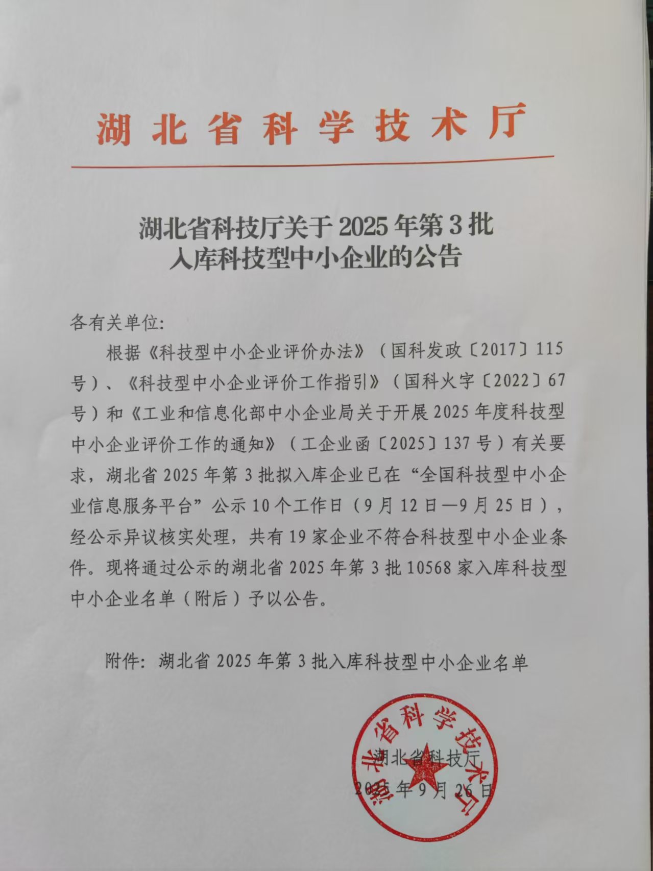 湖北省2025年第3批入库科技型中小企业名单公告正文.jpg PICTURE