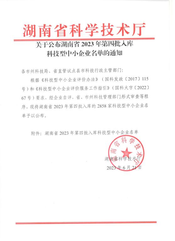 湖南省2023年第4批入库科技型中小企业名单公告正文.jpg PICTURE