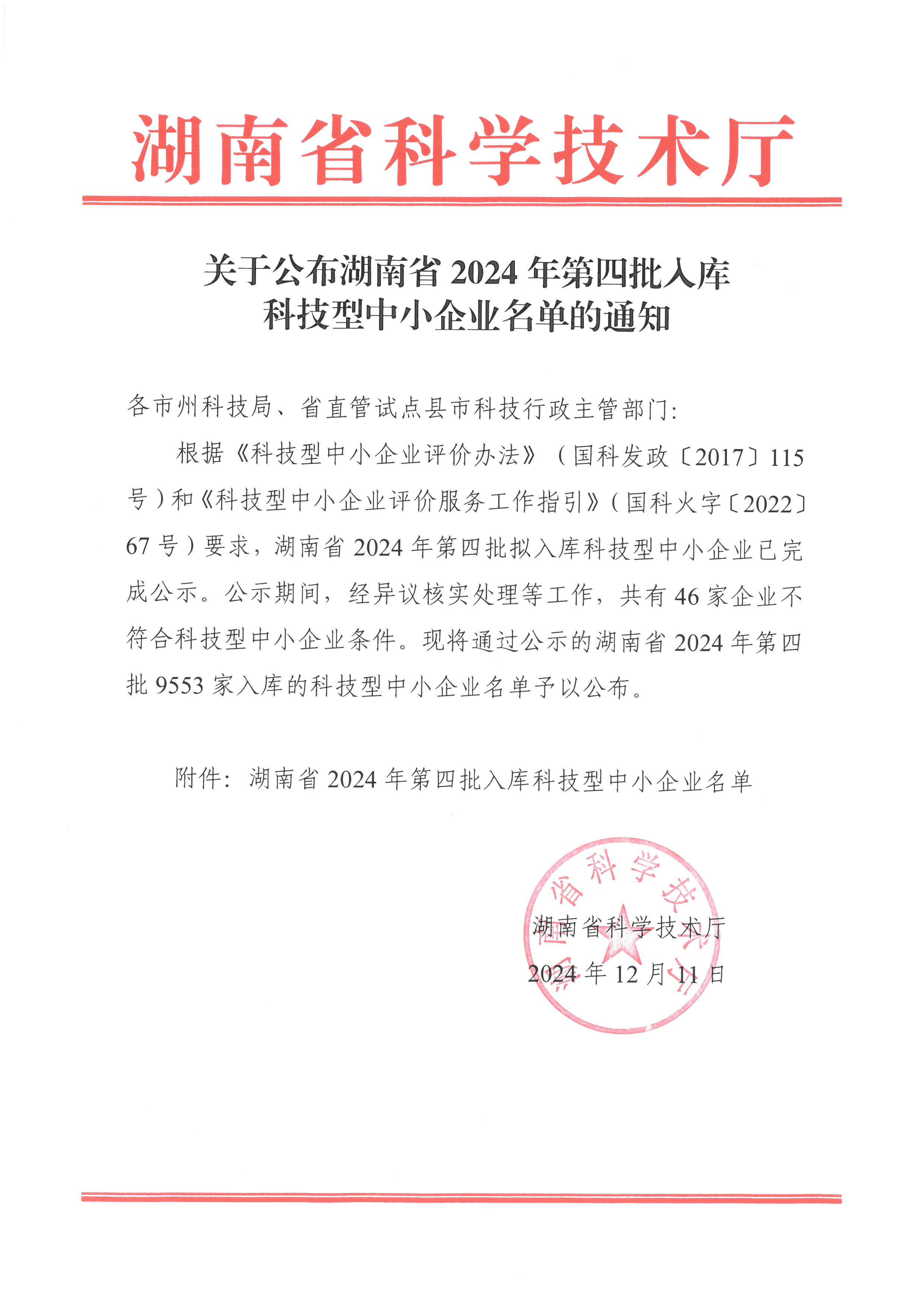 湖南省2024年第4批入库科技型中小企业名单公告正文.jpg PICTURE