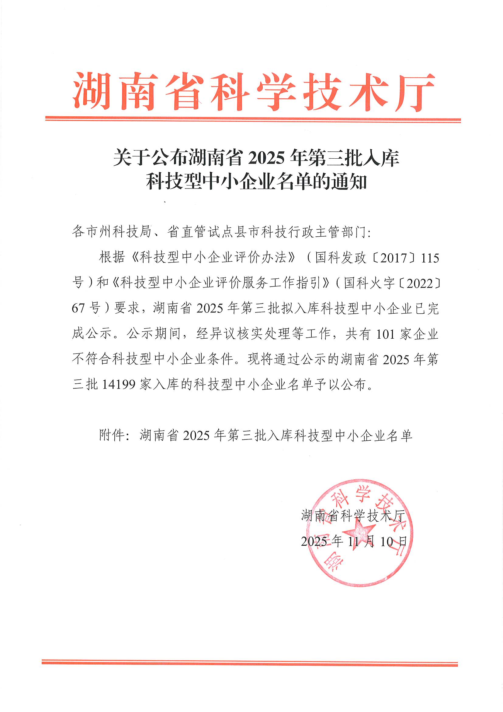湖南省2025年第3批入库科技型中小企业名单公告正文.jpg PICTURE