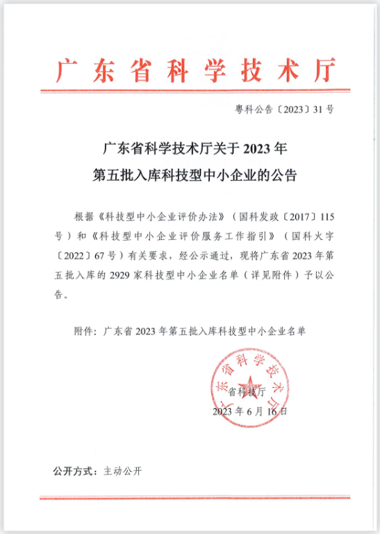 广东省2023年第5批入库科技型中小企业名单公告正文.jpg PICTURE