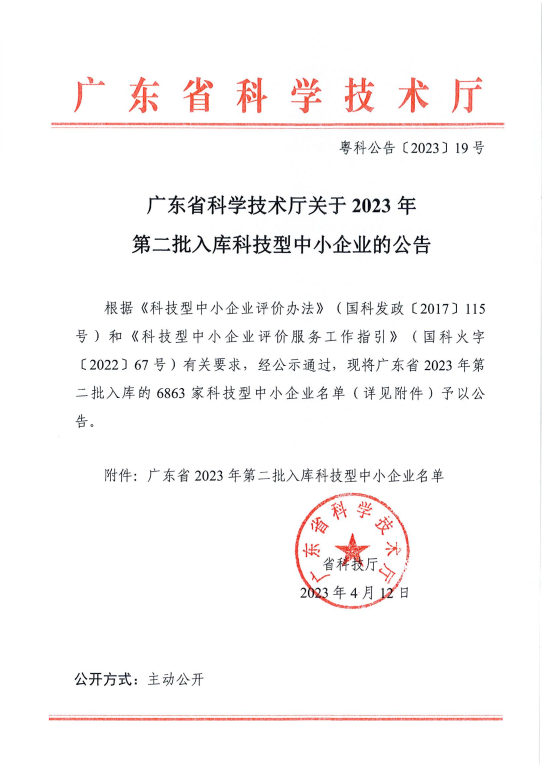 广东省科学技术厅关于2023年第二批入库科技型中小企业的公告(1).png PICTURE