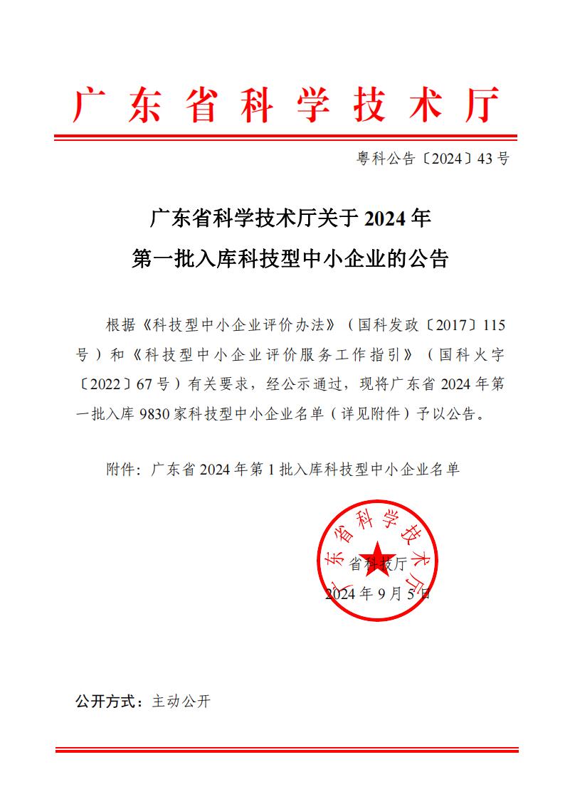 广东省2024年第1批入库科技型中小企业名单公告正文.jpg PICTURE