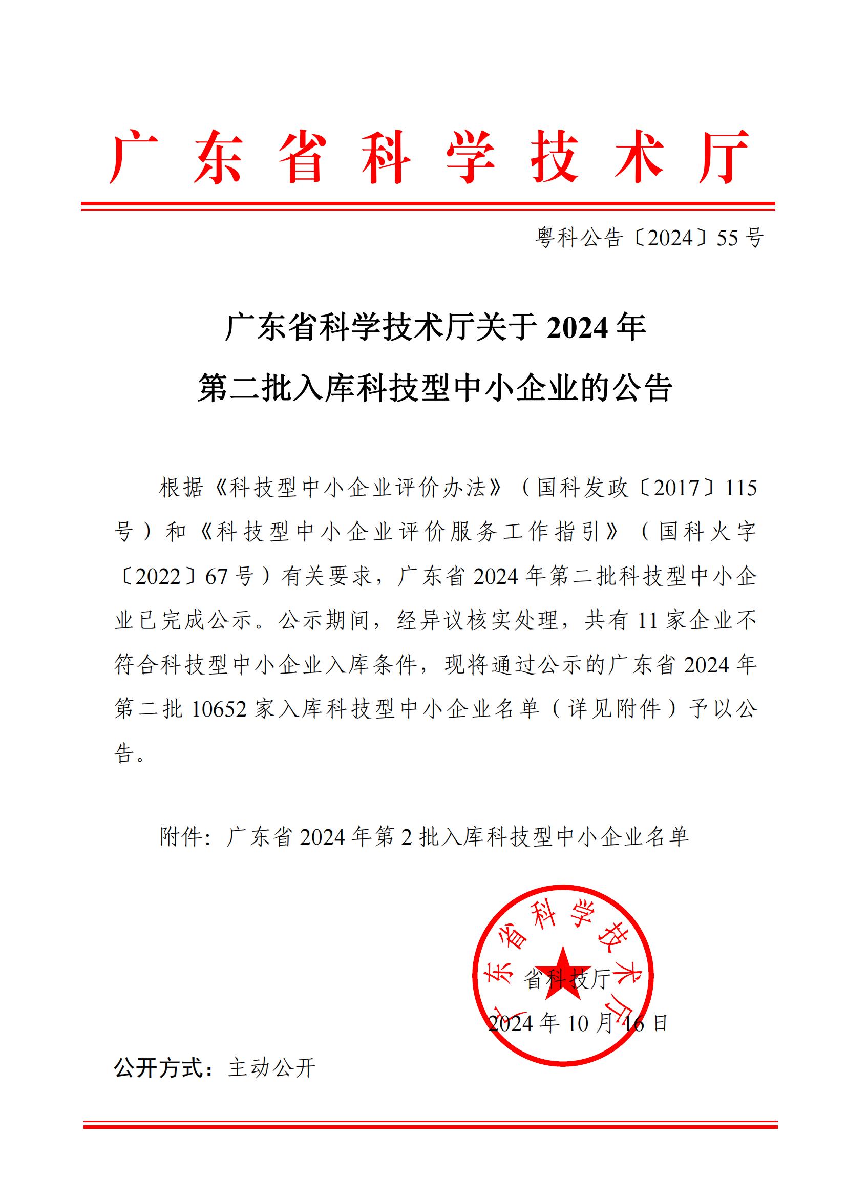 广东省2024年第2批入库科技型中小企业名单公告正文.jpg PICTURE