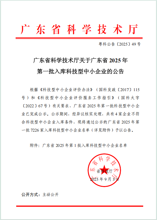 广东省2025年第1批入库科技型中小企业名单公告正文.jpg PICTURE