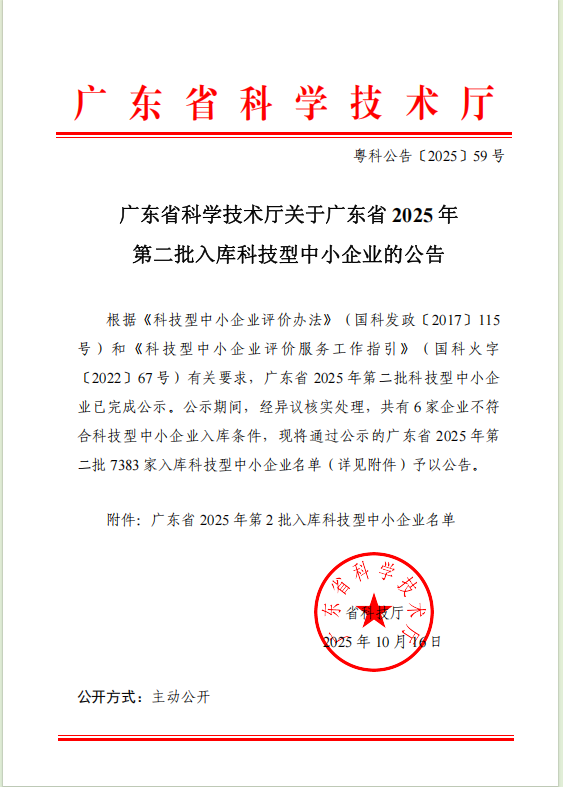 广东省2025年第2批入库科技型中小企业名单公告正文.jpg PICTURE