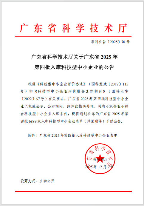 广东省2025年第4批入库科技型中小企业名单公告正文.jpg PICTURE