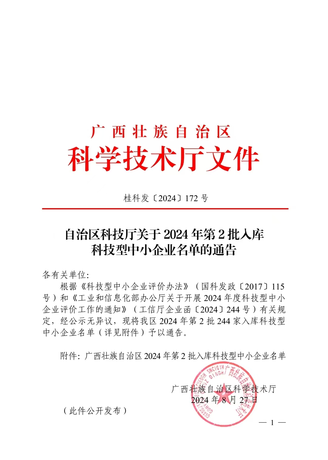 广西壮族自治区2024年第2批入库科技型中小企业名单公告正文.jpg PICTURE
