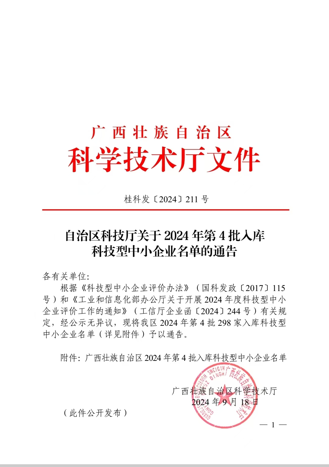 广西壮族自治区2024年第4批入库科技型中小企业名单公告正文.jpg PICTURE