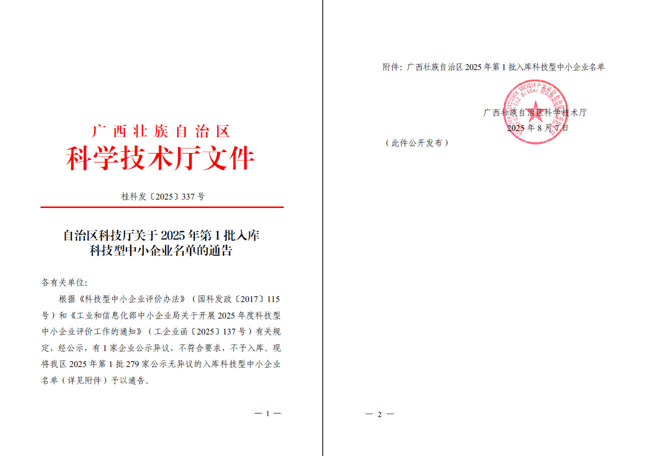 广西壮族自治区2025年第1批入库科技型中小企业名单公告正文.jpg PICTURE
