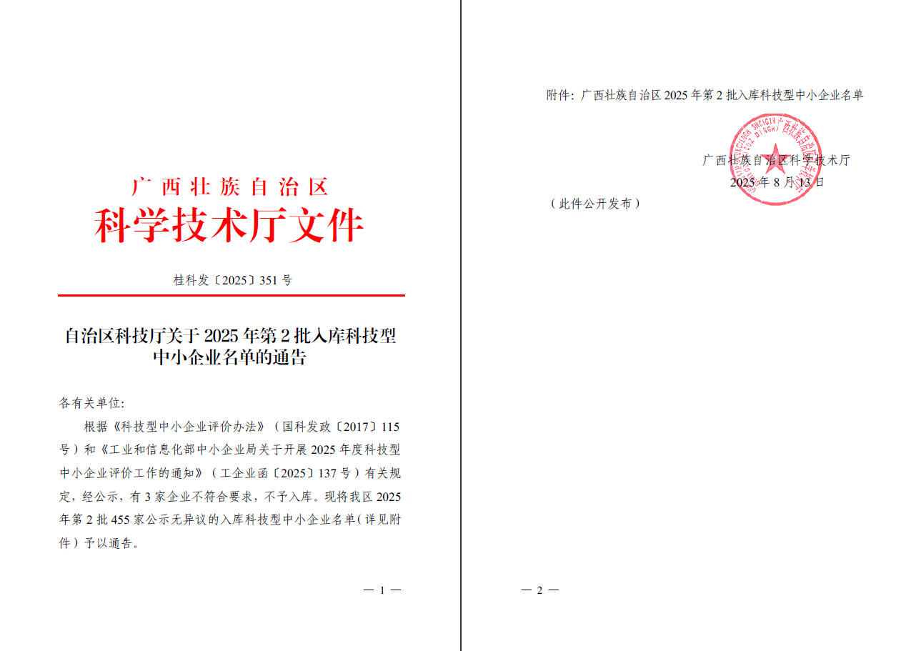 广西壮族自治区2025年第2批入库科技型中小企业名单公告正文.jpg PICTURE