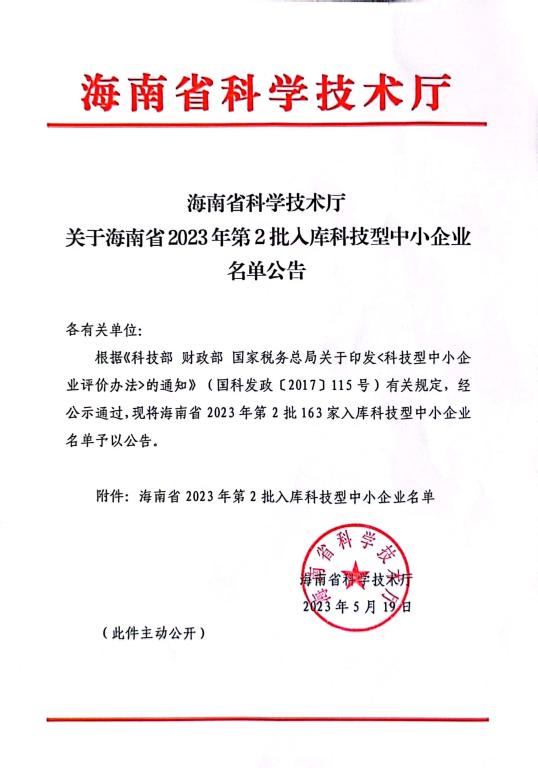 关于海南省2023年第2批入库科技型中小企业名单公告.jpg PICTURE