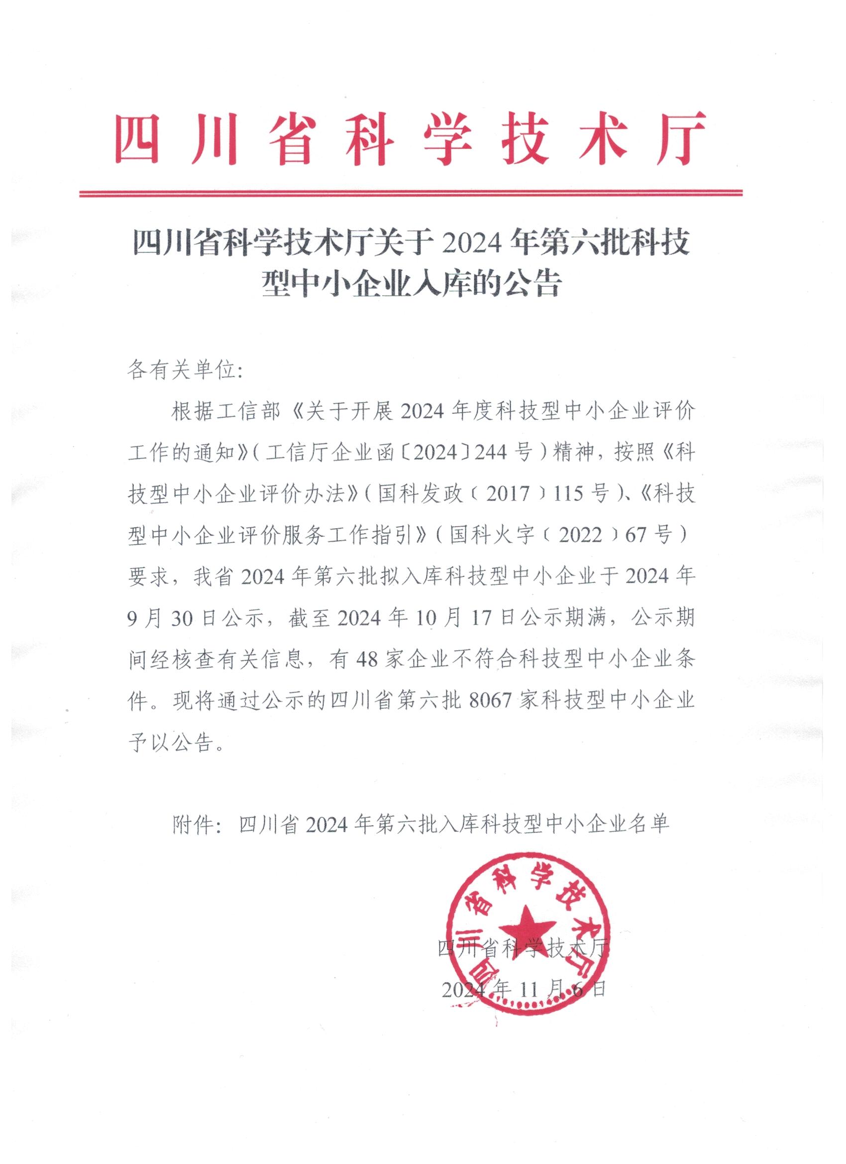 四川省2024年第6批入库科技型中小企业名单公告正文.jpg PICTURE