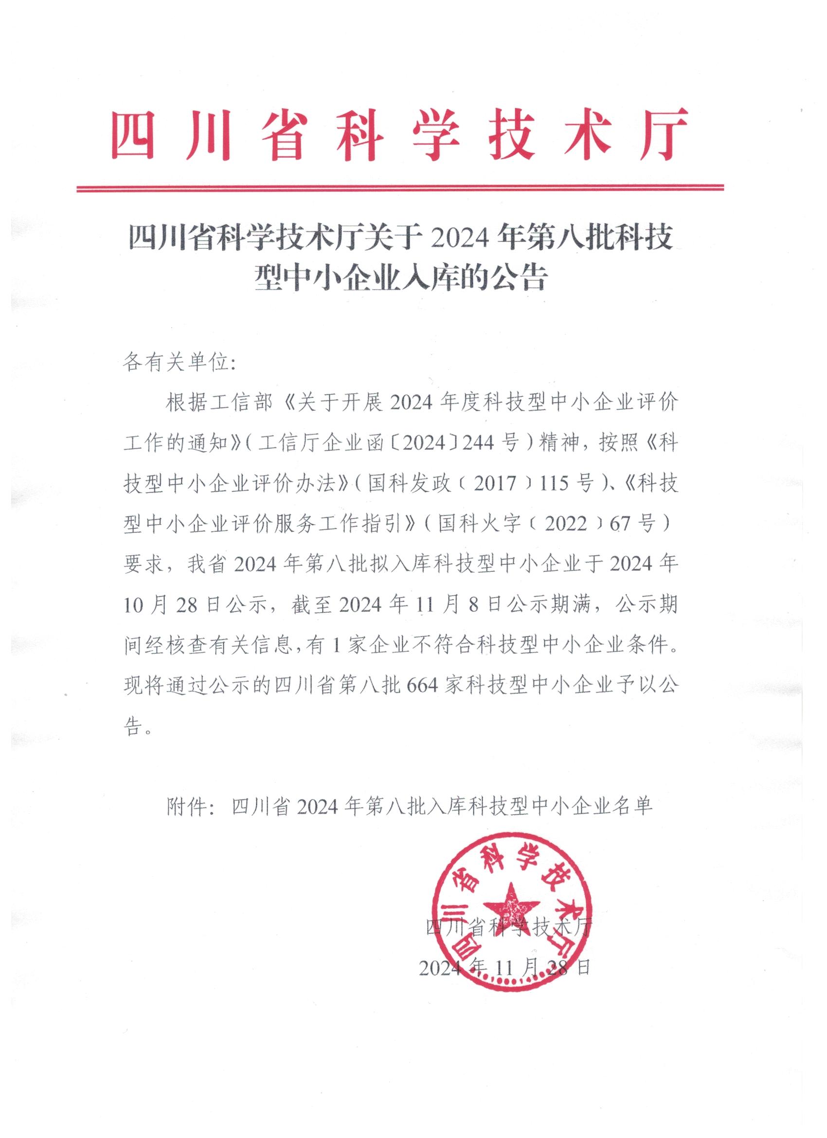四川省2024年第8批入库科技型中小企业名单公告正文.jpg PICTURE