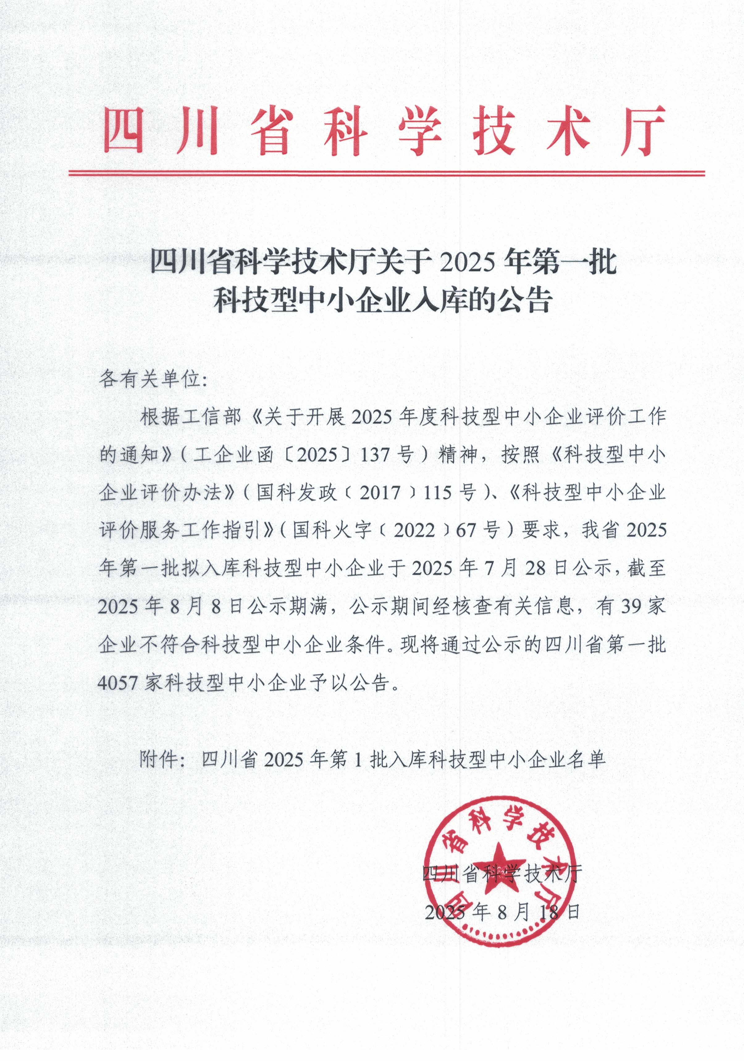 四川省2025年第1批入库科技型中小企业名单公告正文.jpg PICTURE