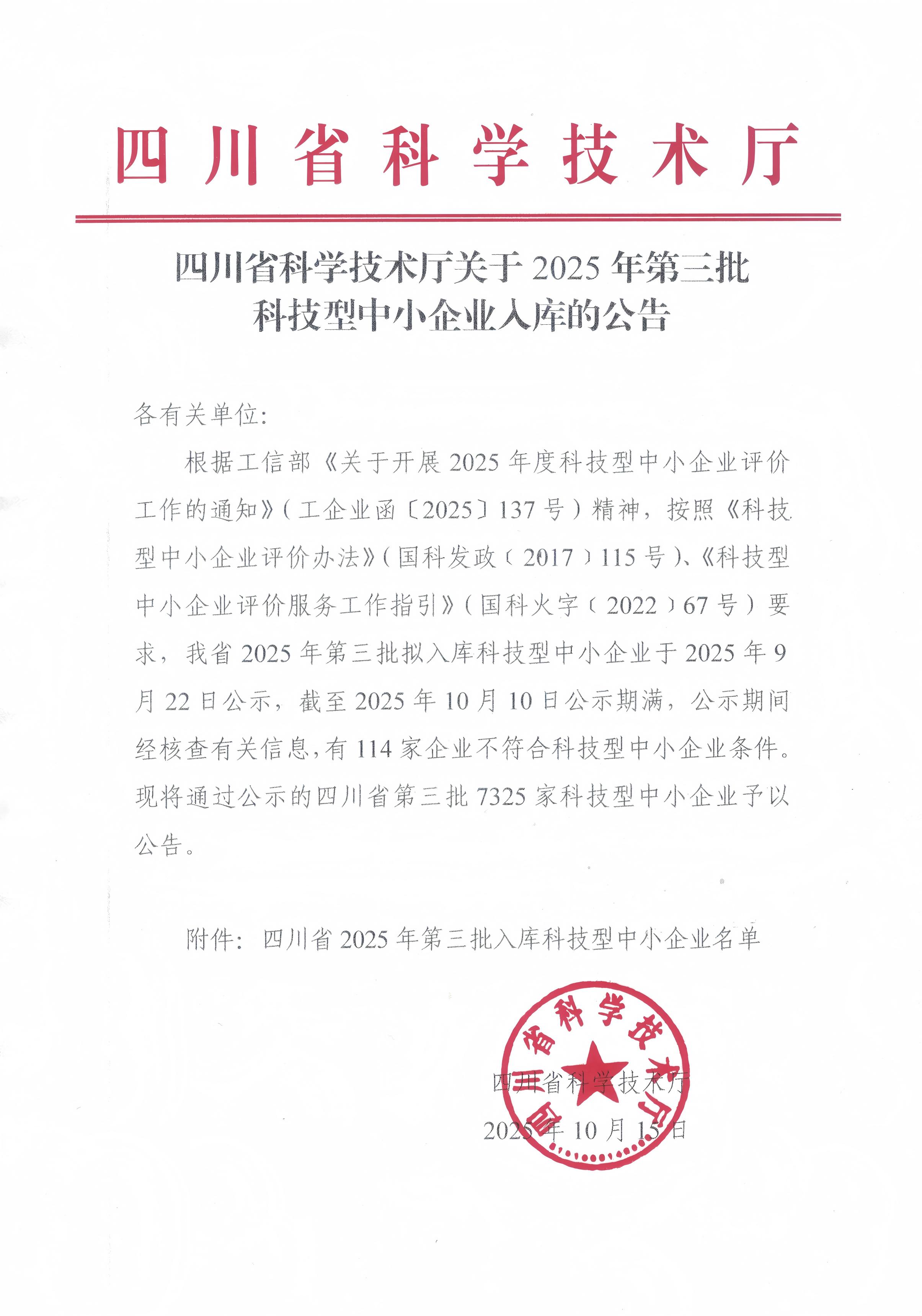 四川省2025年第3批入库科技型中小企业名单公告正文.jpg PICTURE