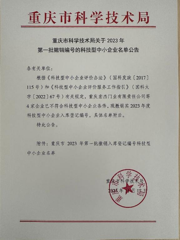 重庆市2023年第1批撤销编号科技型中小企业名单.pdf FILE