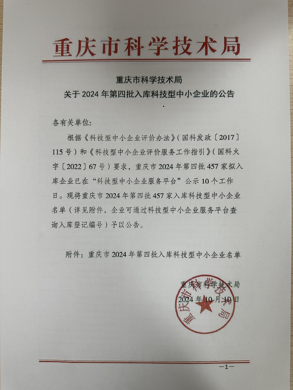 重庆市2024年第4批入库科技型中小企业名单公告正文.jpg PICTURE