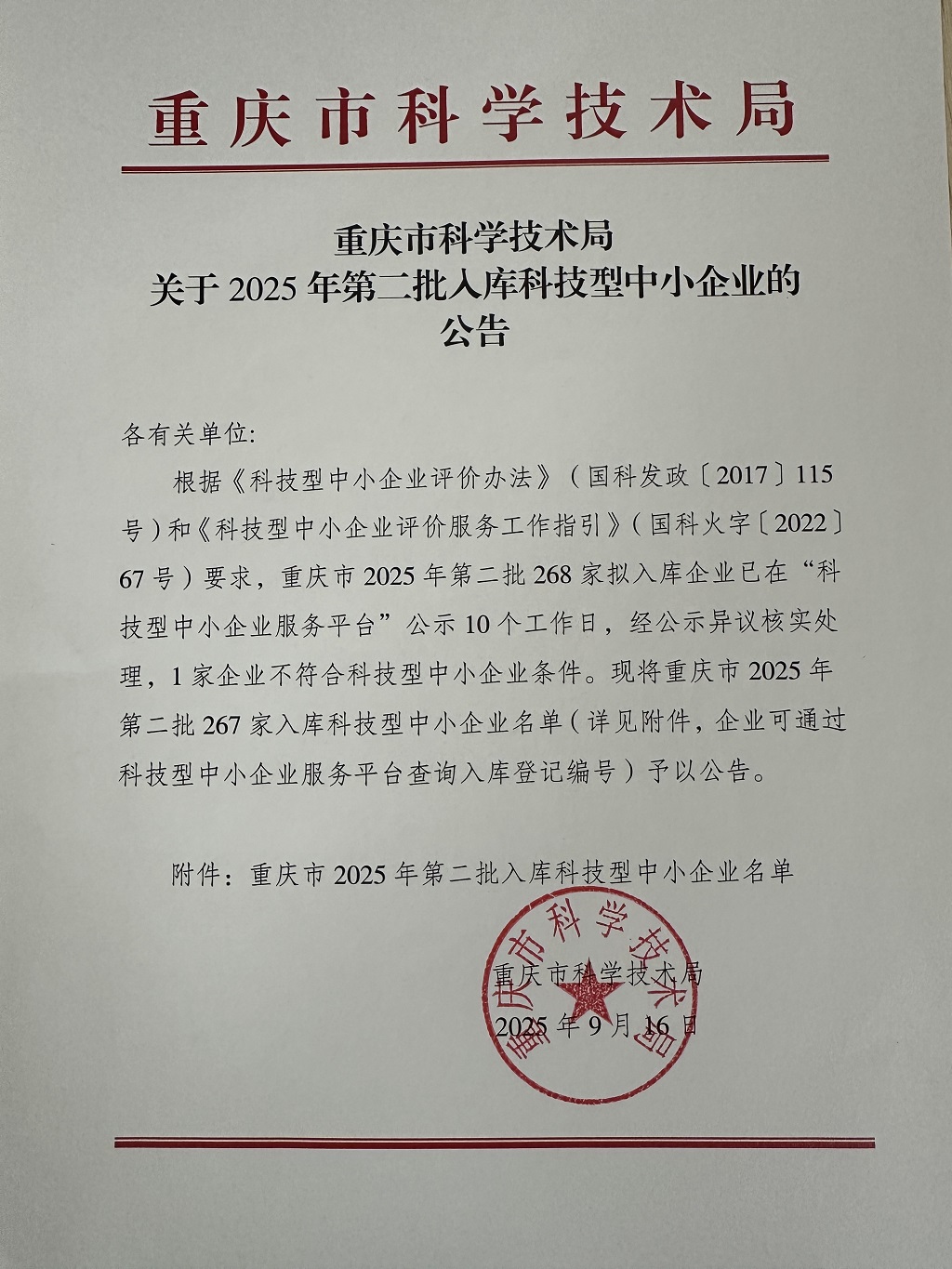 重庆市2025年第2批入库科技型中小企业名单公告正文.jpg PICTURE