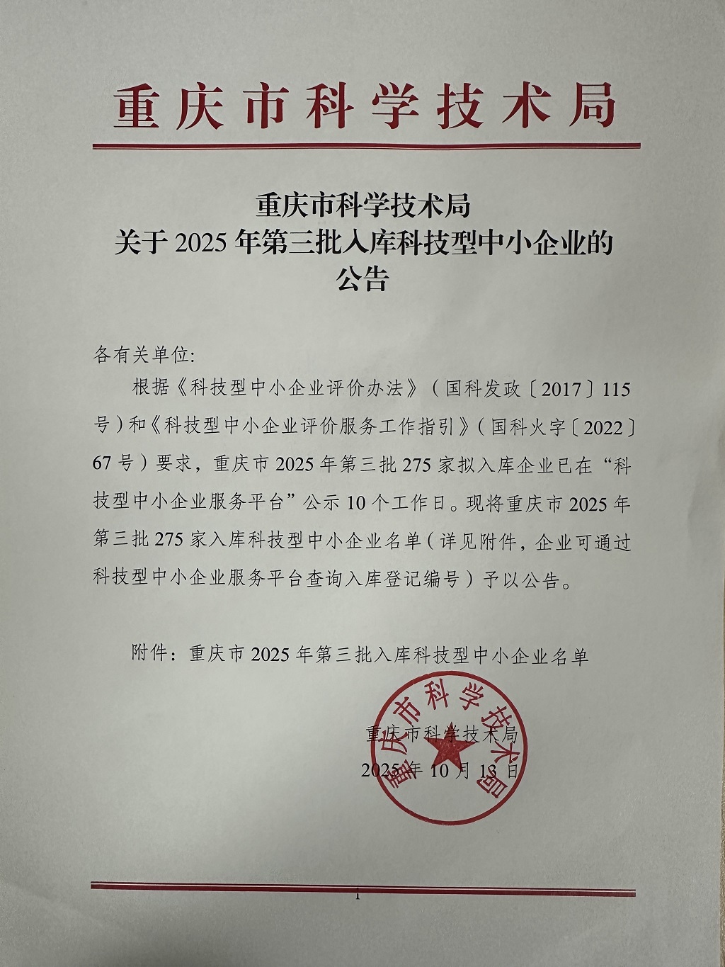 重庆市2025年第3批入库科技型中小企业名单公告正文.jpg PICTURE