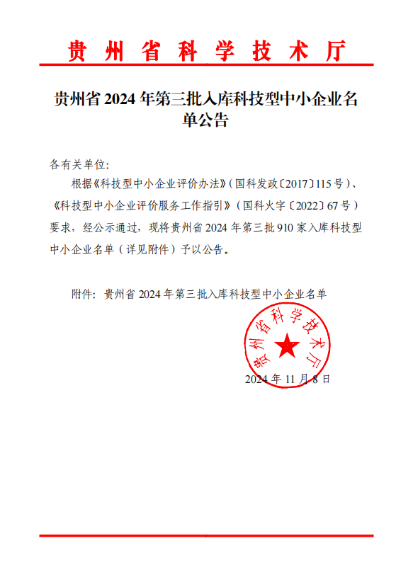 贵州省2024年第3批入库科技型中小企业名单公告正文.jpg PICTURE
