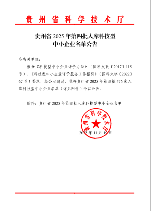 贵州省2025年第4批入库科技型中小企业名单公告正文.jpg PICTURE