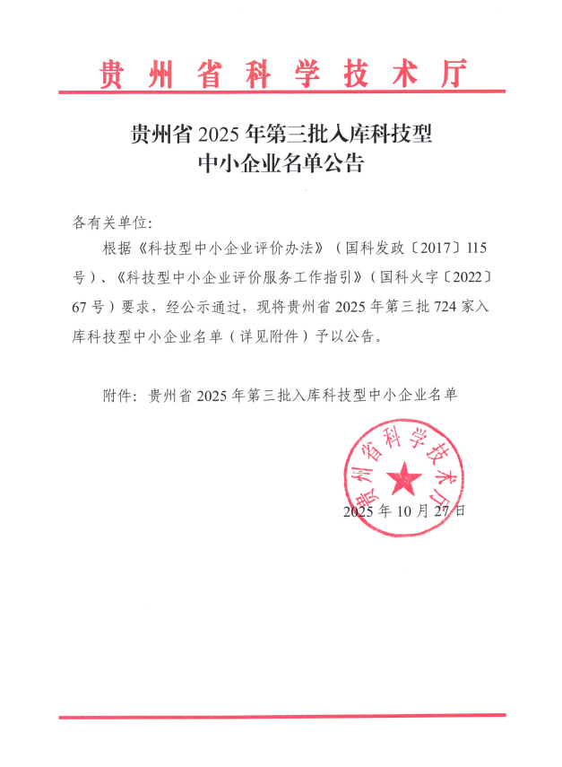 贵州省2025年第3批入库科技型中小企业名单公告正文.jpg PICTURE