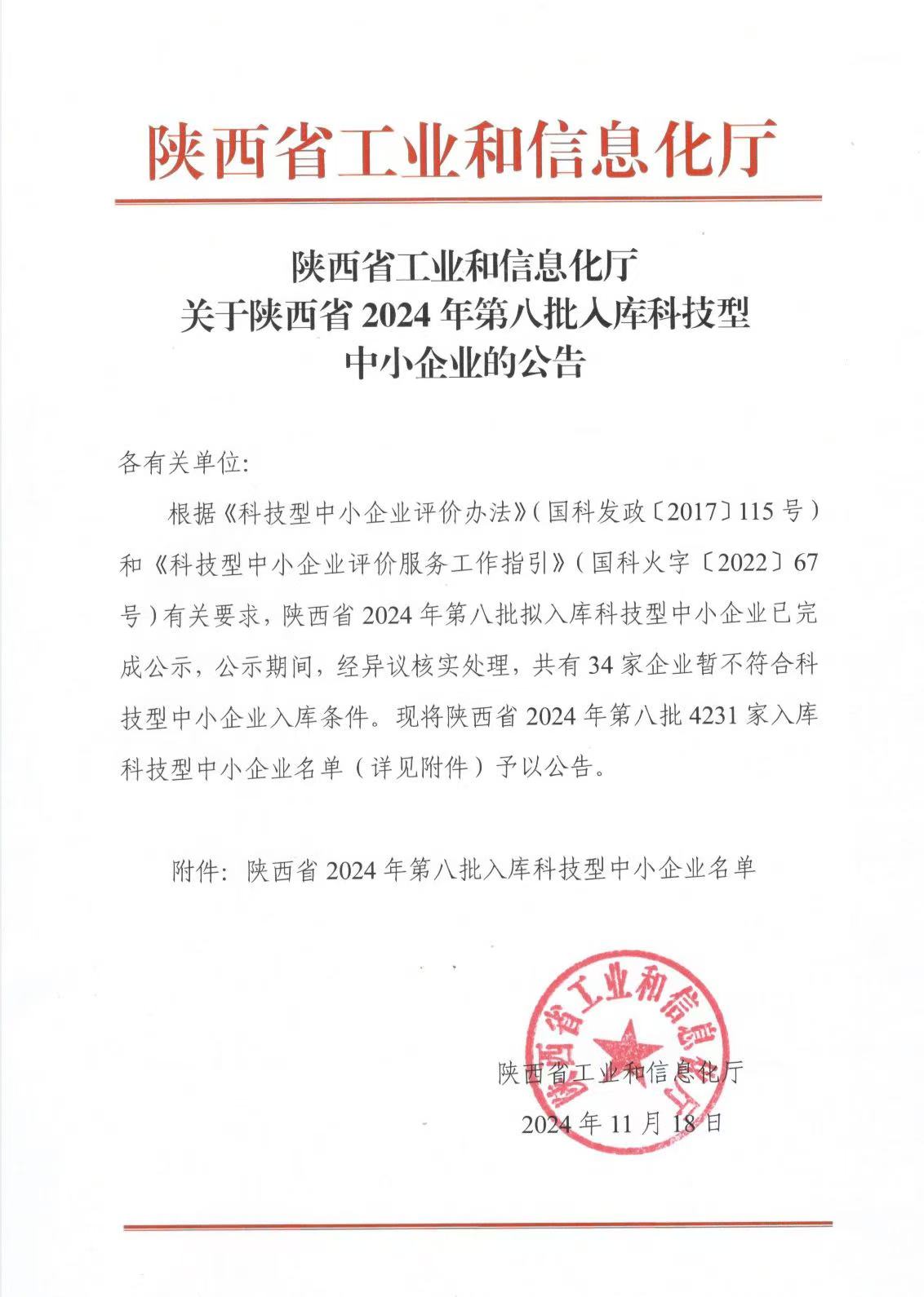 陕西省2024年第8批入库科技型中小企业名单公告正文.jpg PICTURE