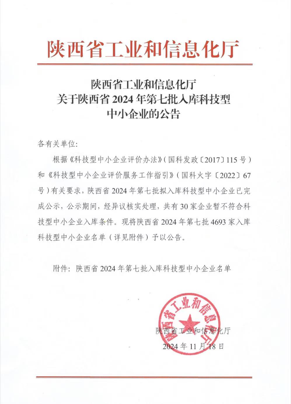 陕西省2024年第7批入库科技型中小企业名单公告正文.jpg PICTURE