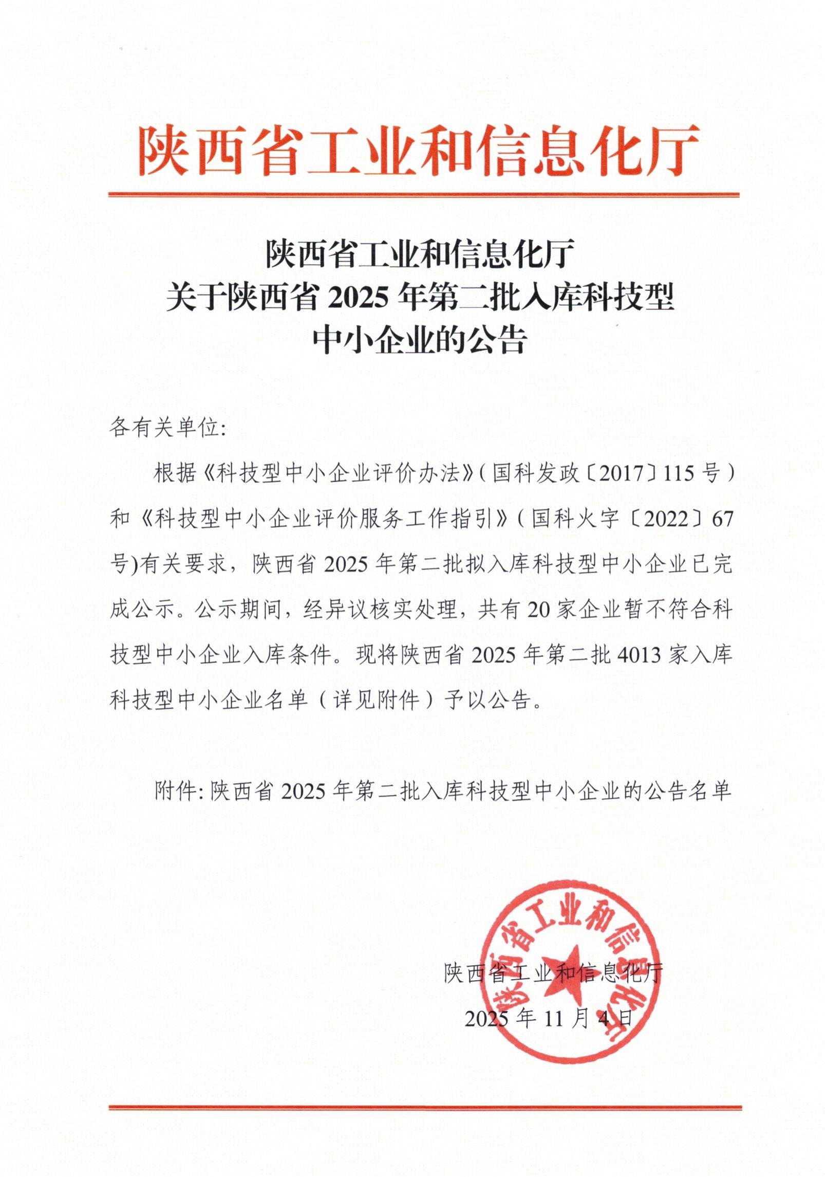 陕西省2025年第2批入库科技型中小企业名单公告正文.jpg PICTURE