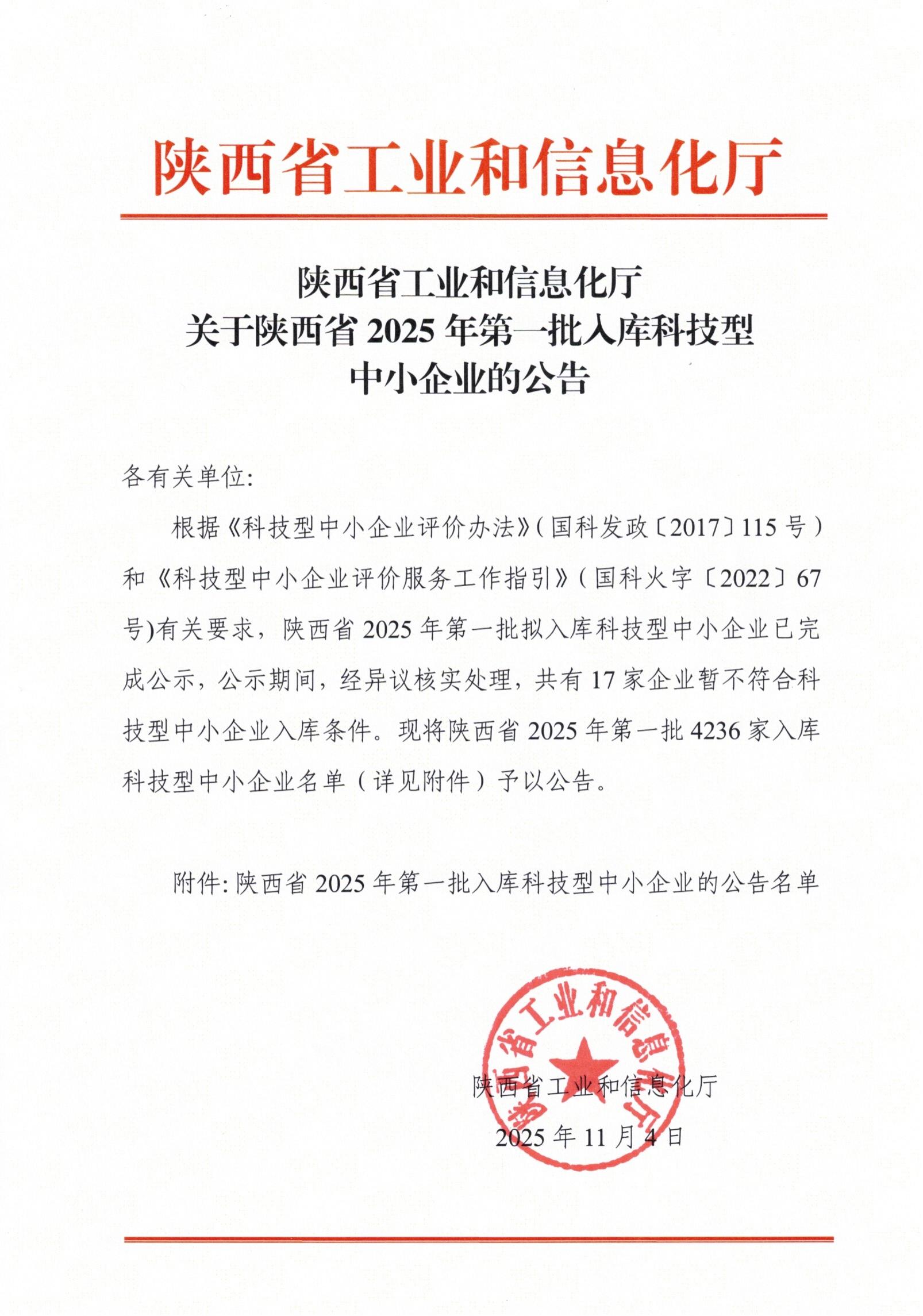 陕西省2025年第1批入库科技型中小企业名单公告正文.jpg PICTURE