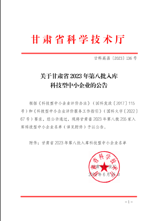 甘肃省2023年第8批入库科技型中小企业名单公告正文.jpg PICTURE
