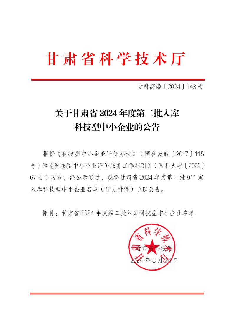 关于甘肃省2024年度第二批入库科技型中小企业的公告.jpg PICTURE